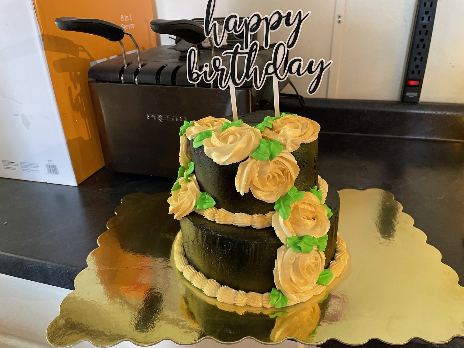 Black Cake With Yellow Roses